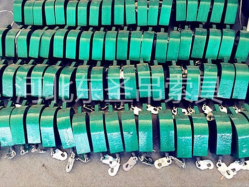 此圖片為前兩天河北東圣吊索具為客戶趕制的一批2噸十米防墜器,此圖片是防墜器的外部殼體,做完噴漆工序以后在晾曬。