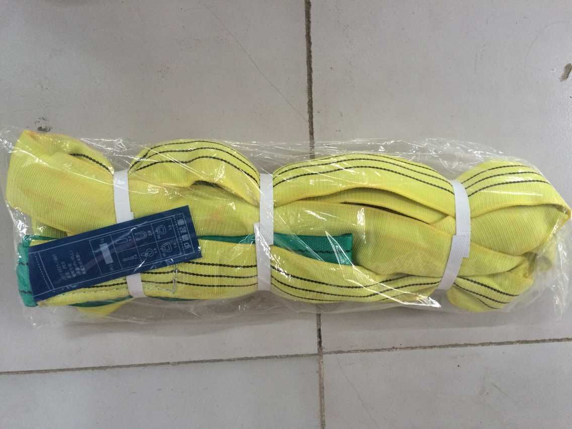 圓形吊裝帶,大的負(fù)荷達(dá)到3000噸,有效長(zhǎng)度為100米,安全系數(shù)為7:1或者6:1。圓形吊裝帶是采用高強(qiáng)度聚酯工業(yè)絲PES制成,內(nèi)部承載芯采用無線環(huán)繞結(jié)構(gòu)形成的無限循環(huán)狀,外部使用PES編織而成的套管對(duì)承載芯加以保護(hù),但是并不起任何受力作用。EA圓形吊裝帶維護(hù)相當(dāng)簡(jiǎn)易,由于EA圓形吊裝帶在外力撞擊下