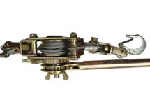 緊線器,又叫棘輪收緊器,是在架空線路敷設(shè)施工中作為拉緊導線用的。使用時先把緊線器上的鋼絲繩或鍍鋅鐵線松開,并固定在橫擔上,用夾線鉗夾住導線,然后扳動專用板手。由于