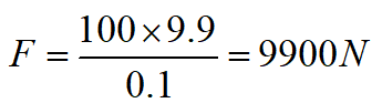 假設(shè)一個質(zhì)量為 100 kg 的物體從 5 米高處落下,停止時間為 0.1 秒: